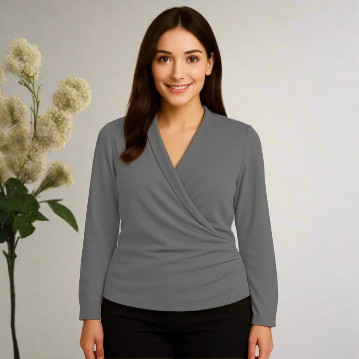 بلوزة كروس سكوبا رمادي ليكرا